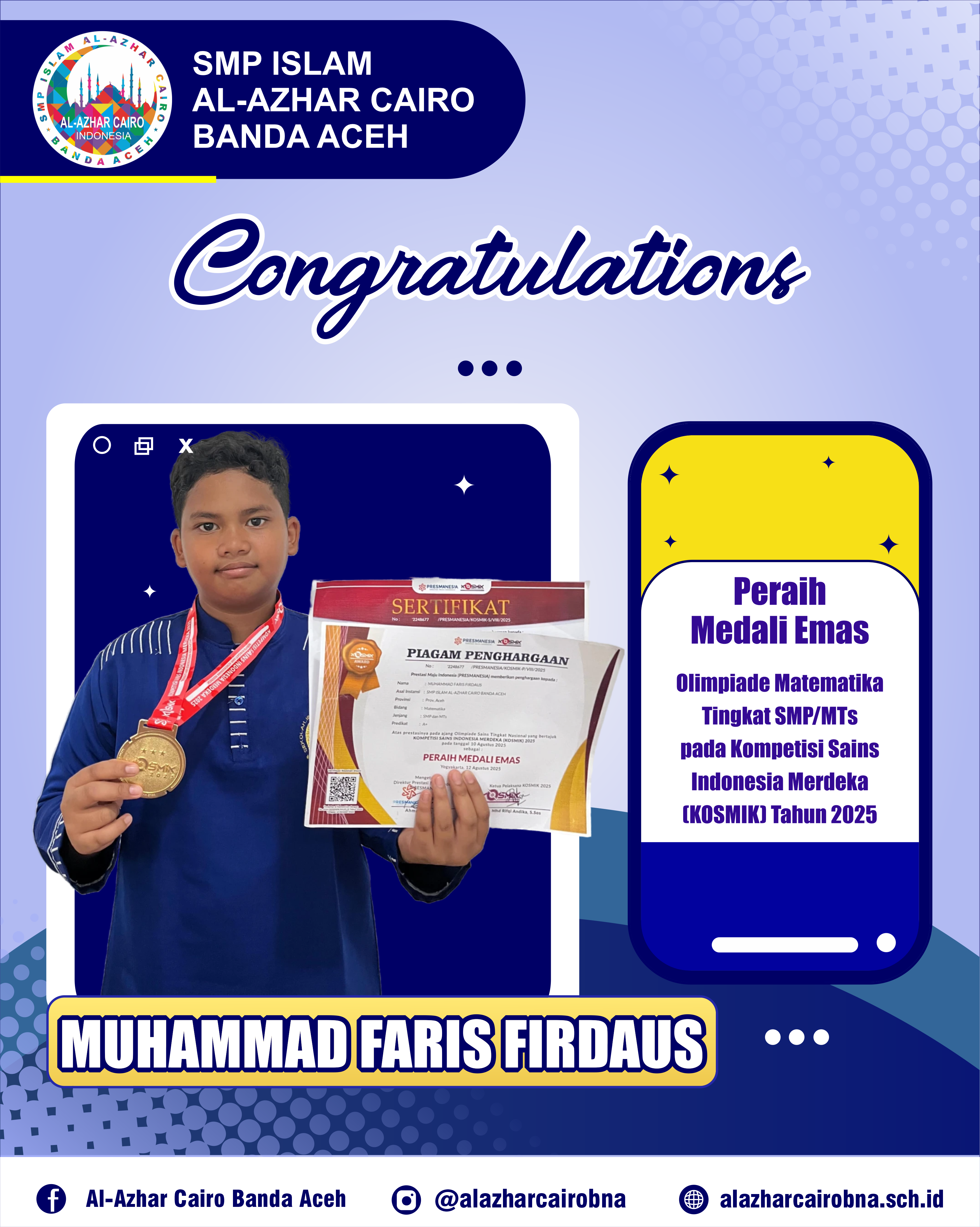 MUHAMMAD FARIS FIRDAUSKegiatan : Prestasi Olimpiade Nasional (Mendapatkan Medali) tanggal : 15/09/2025