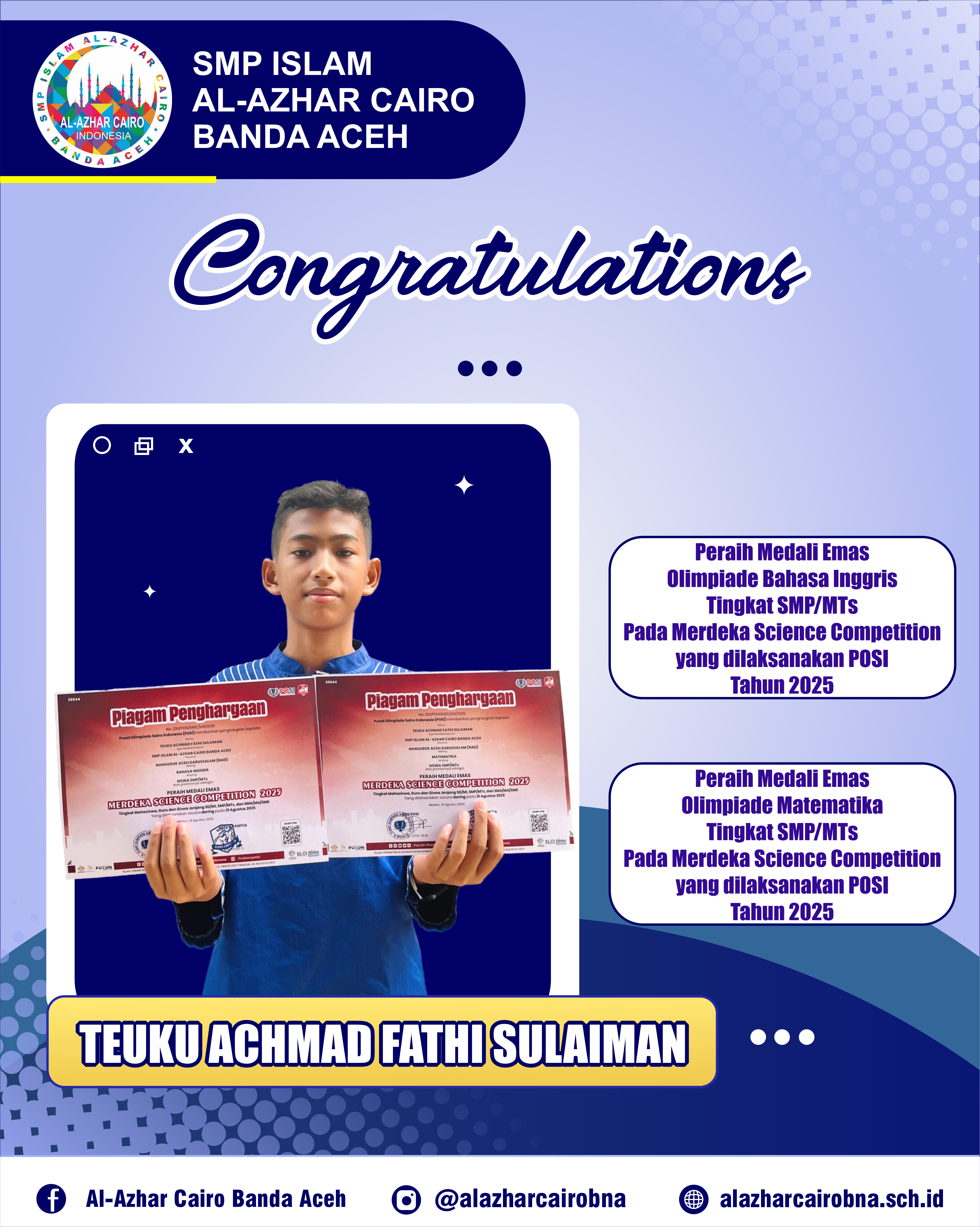 TEUKU ACHMAD FATHI SULAIMANKegiatan : Prestasi Olimpiade Nasional (Mendapatkan Medali) tanggal : 09/09/2025