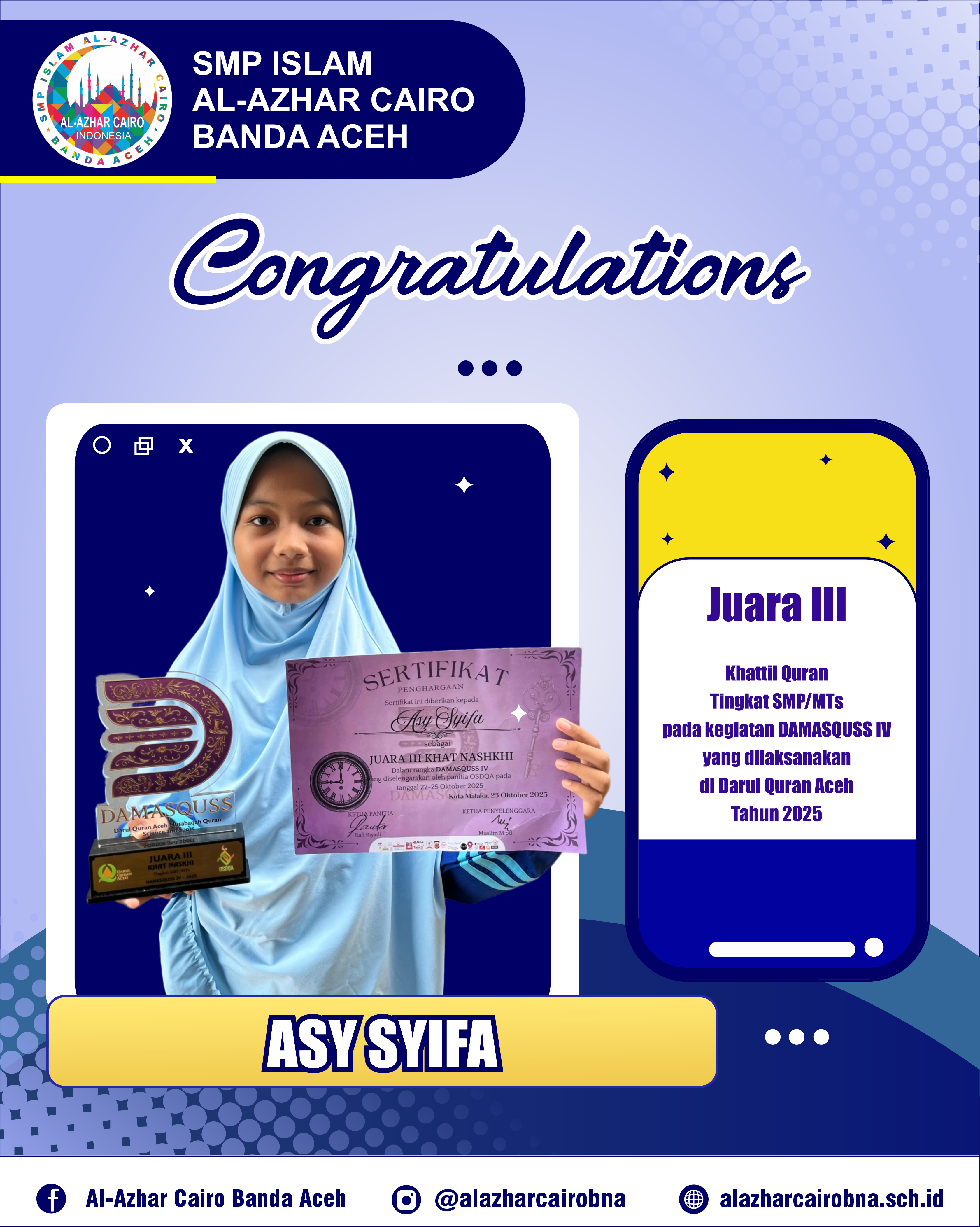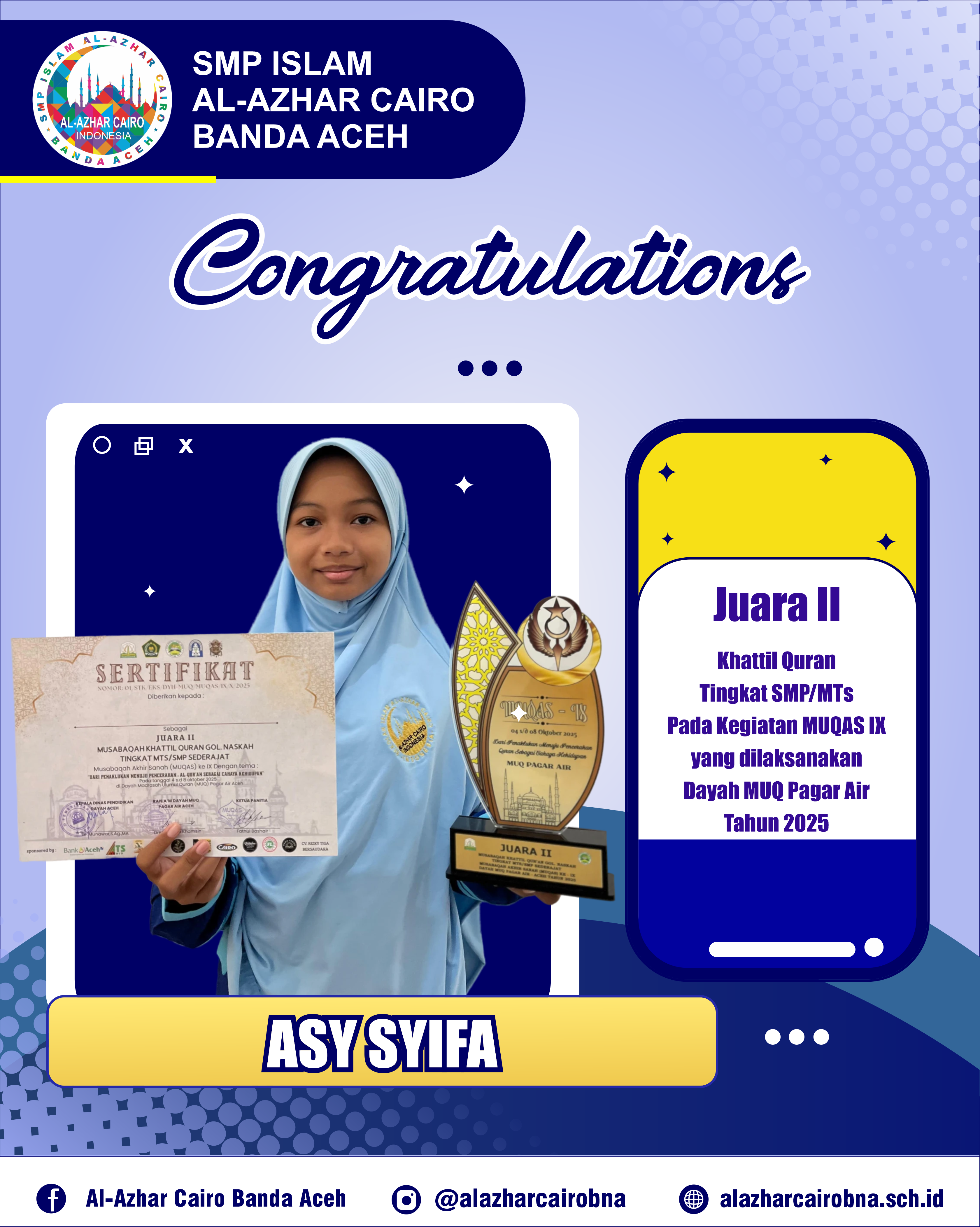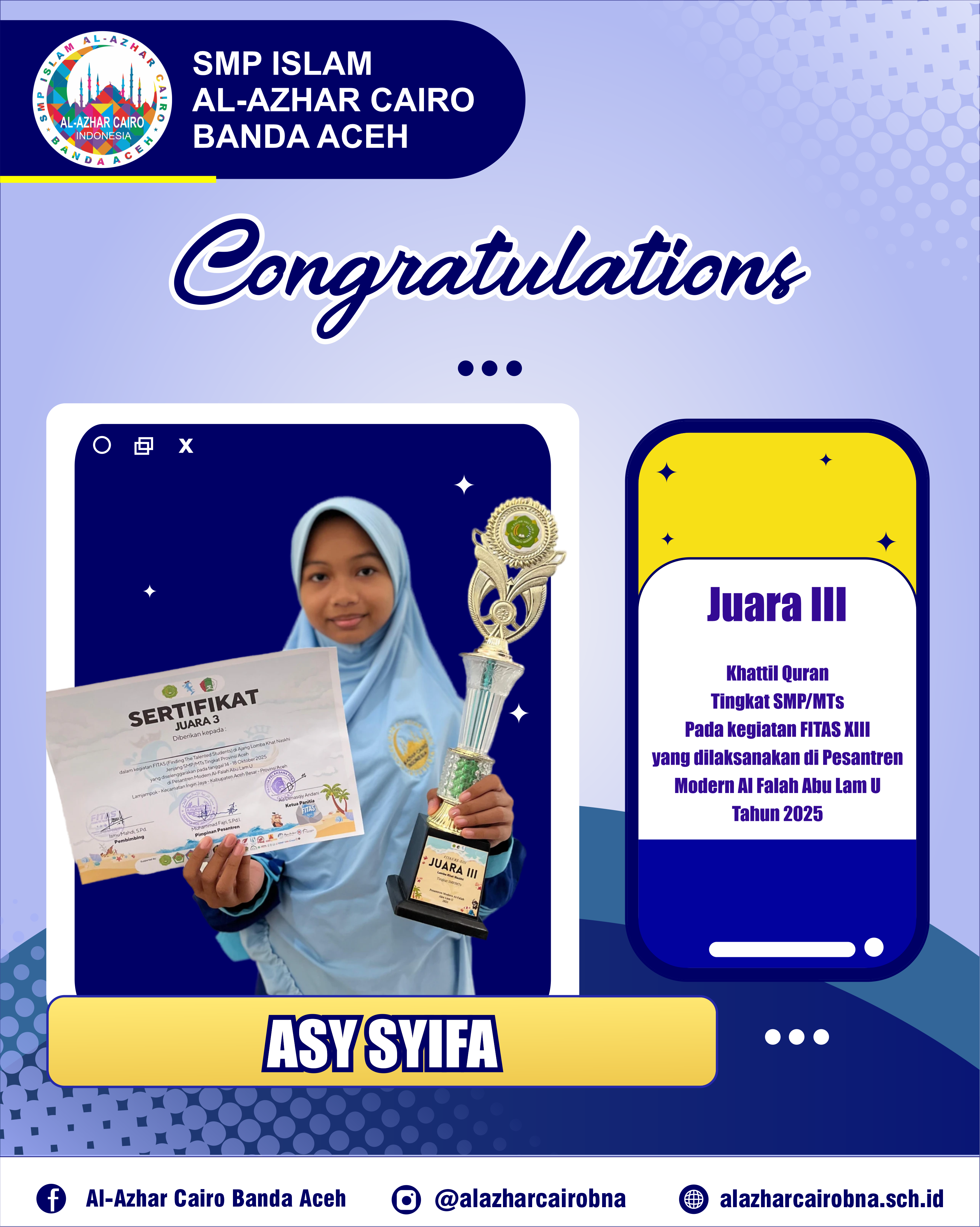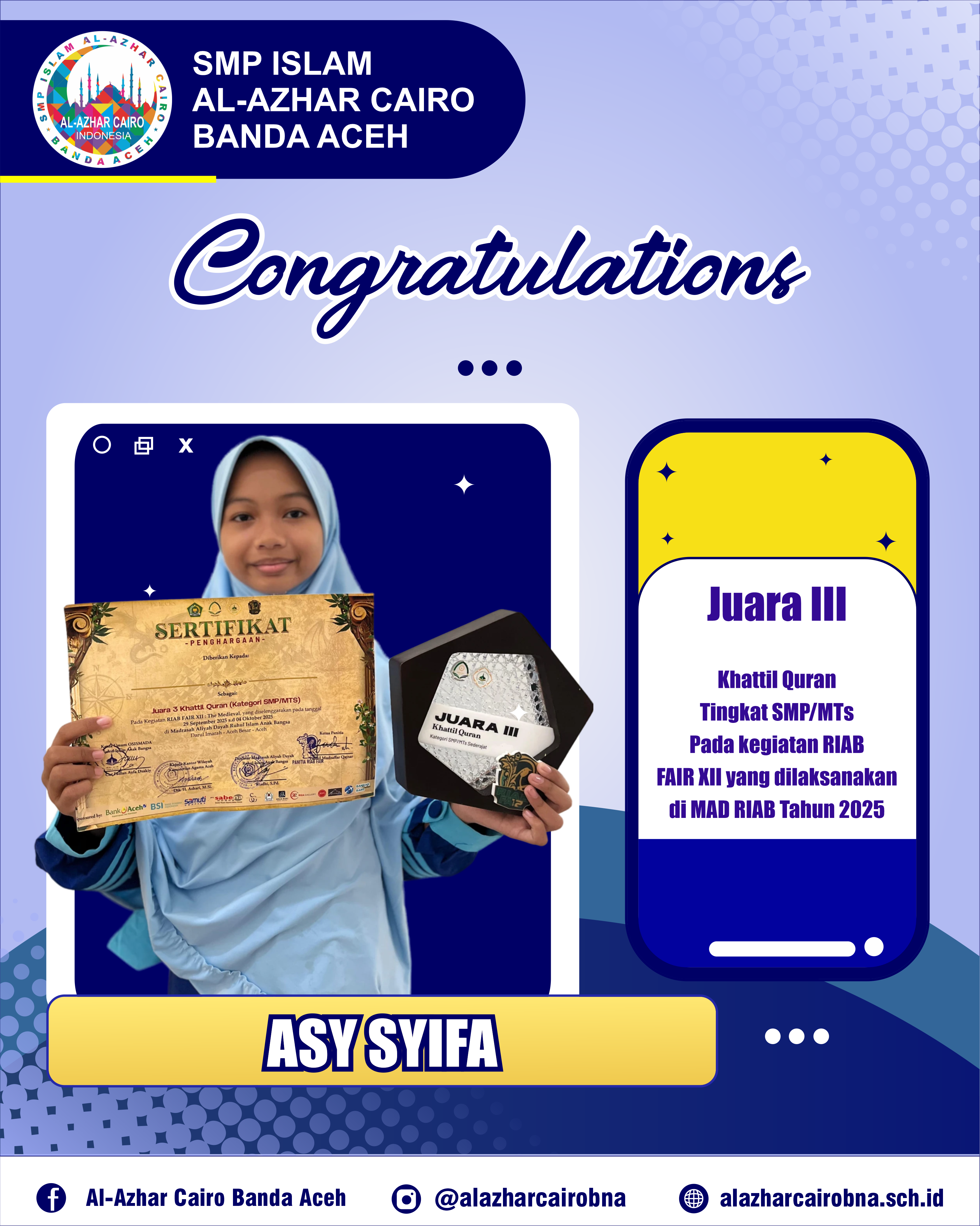 ASY SYIFAKegiatan : Meraih kejuaraan atas nama pribadi diluar lingkungan seklah tanggal : 03/11/2025