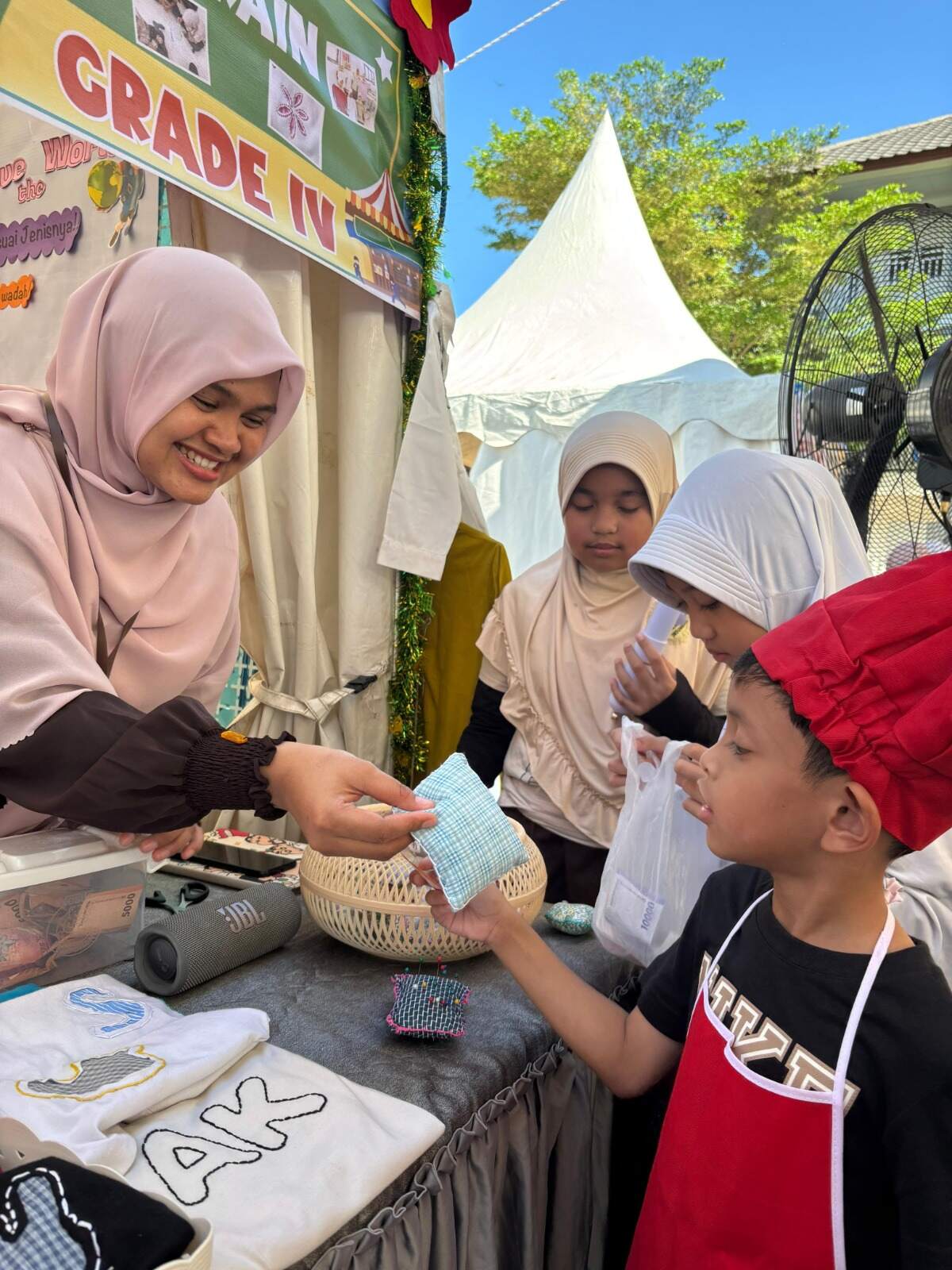 Suasana yang tercipta selama kegiatan Pasar Raya sangat meriah dan penuh semangat. Setiap stand dihias dengan tema yang unik sehingga menarik perhatian pengunjung. Para peserta tidak hanya berjualan, tetapi juga belajar bagaimana melayani pelanggan dengan baik, mengatur keuangan sederhana, serta bekerja sama dalam tim. Hal ini menjadikan Pasar Raya sebagai sarana pembelajaran nyata di luar kelas yang sangat bermanfaat.